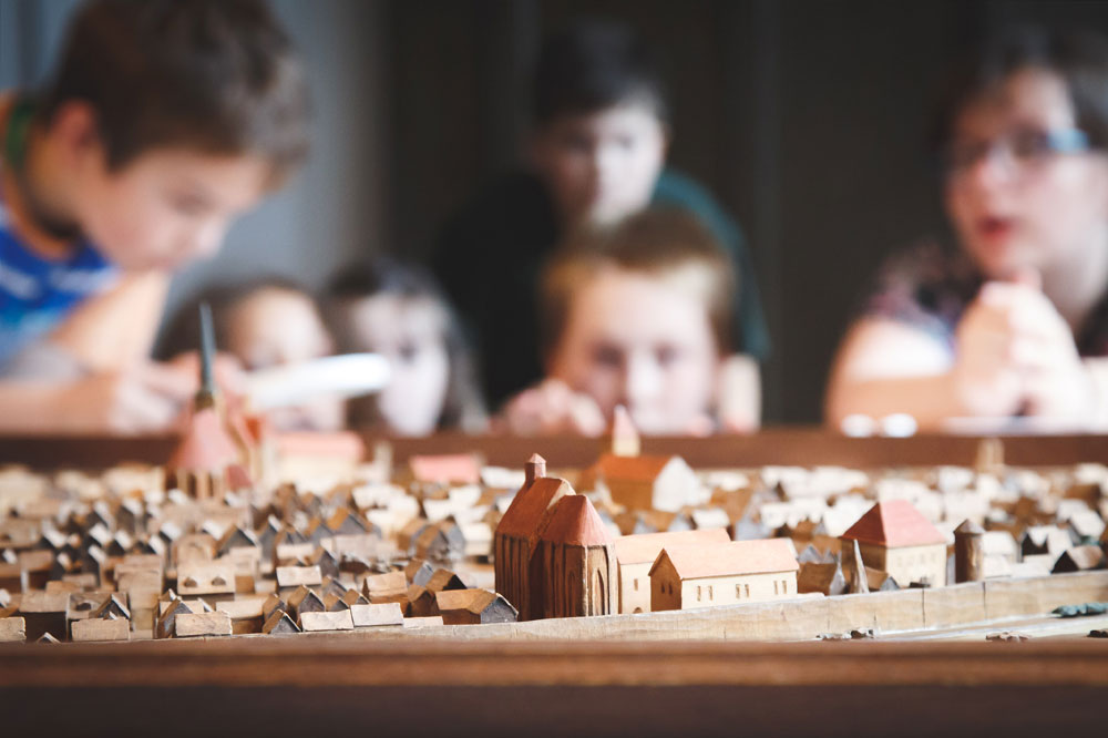 We've chosen two themes for this purpose: Berlin in the Middle Ages, and daily life and childhood in Berlin around 1900. You can explore the founding of Berlin with the help of a city model, sit on a school bench like your great-great grandparents, try out writing implements from different eras or hear the stories of people who lived in typical Berlin tenements – at the [Test]Spaces, the reflects the programme!